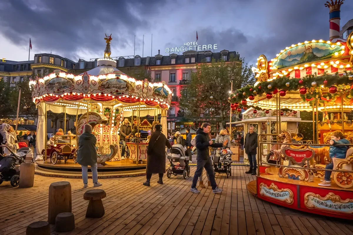 Noël au Quai, Genève (Christmas on the Dock, Geneva) is a festive holiday market set along the scenic Quai du Mont-Blanc by Lake Geneva, where twinkling lights, wooden chalets, and the snowy peaks of the Alps create a magical backdrop. Visitors can browse artisan crafts, sample seasonal delights from vin chaud to Swiss specialties, and enjoy a lively program of concerts, street performances, and family activities. With its lakeside setting and international flair, the market blends Swiss tradition with cosmopolitan charm, making it one of Geneva’s most beloved winter events.
